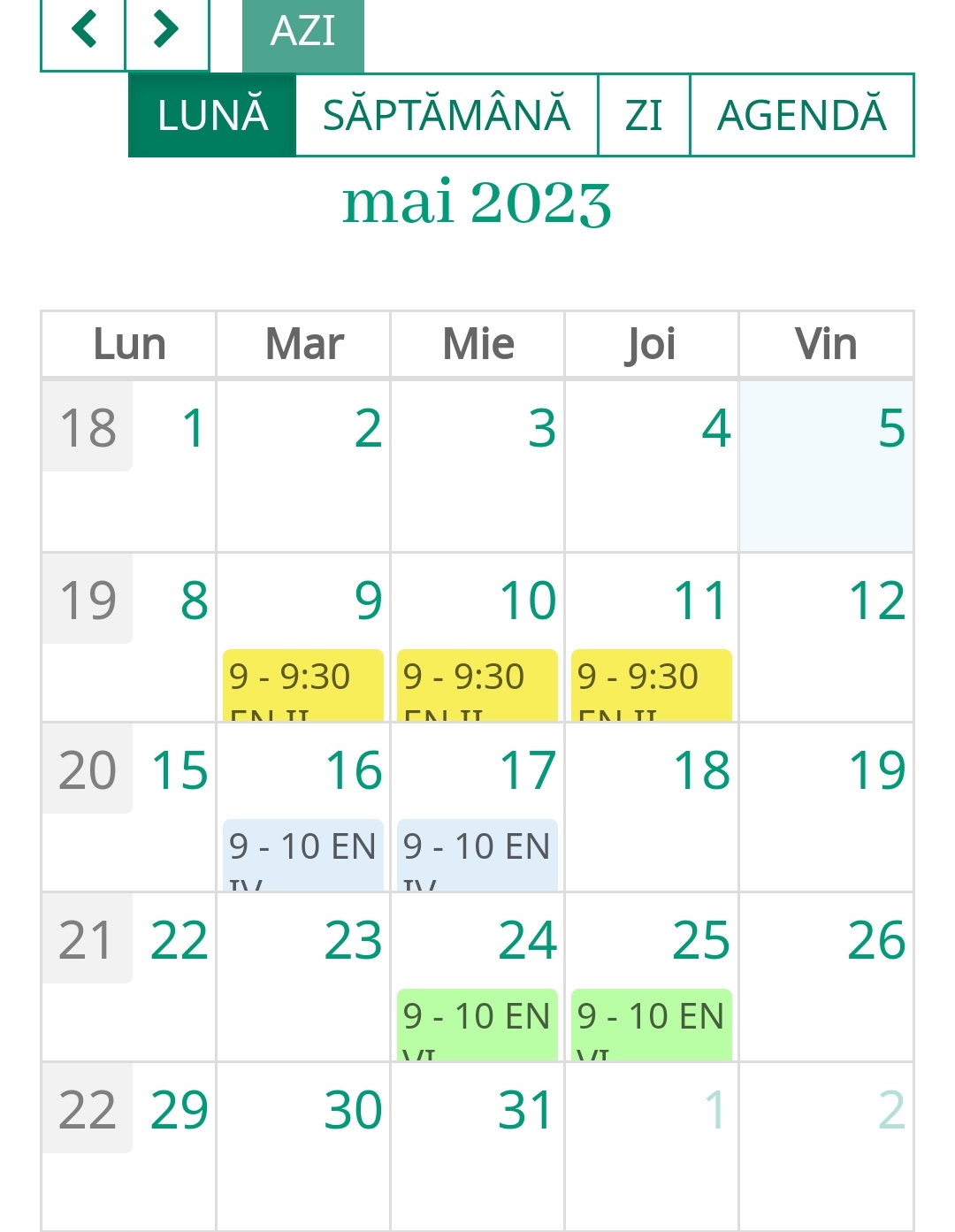 Începând din 9 mai 2023 încep Evaluările Naționale la clasele a II-a, a IV-a și a VI-a:Datele colorate cu galben sunt pentru clasa a II-a,, urmează clasa a IV-a și clasa a VI - a.